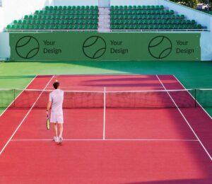 Application publicité sur court de tennis ou terrain de sport, filet d’ombrage pour la protection des courts de tennis